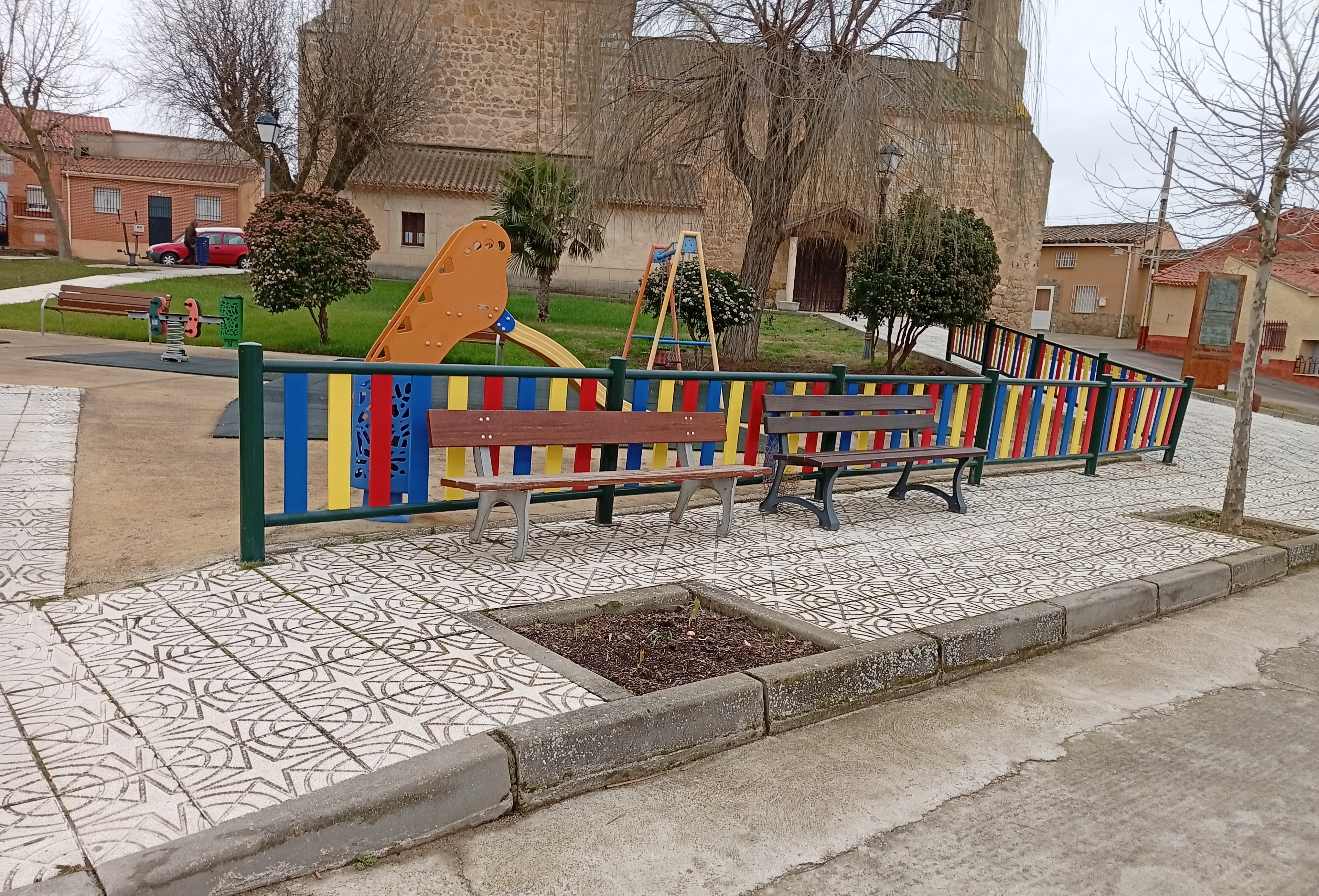 Una fotografía de Algodre, concretamente en el Parque Infantil de Algodre. Sus calles más cercanas son C. Las Gavias, C. Tras la Iglesia, Plz. Mayor y C. General Primo Rivera. Este parque ha pasado por varias reformas, la más reciente fue quitar la arena del parque para poner caucho, también se puso una nueva fuente y unos nuevos juegos para el parque. Lugar de charla, cuenta con bancos y papeleras nuevas de colores. En el Verano por la noche el parque suelen haber muchos niños.